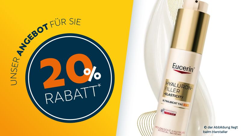 Individuelle Hautanalyse und Beratung und 20 % Rabatt* auf alle vorrätigen Produkte von „Eucerin“. Bitte reservieren Sie online oder vor Ort Ihren Termin.
